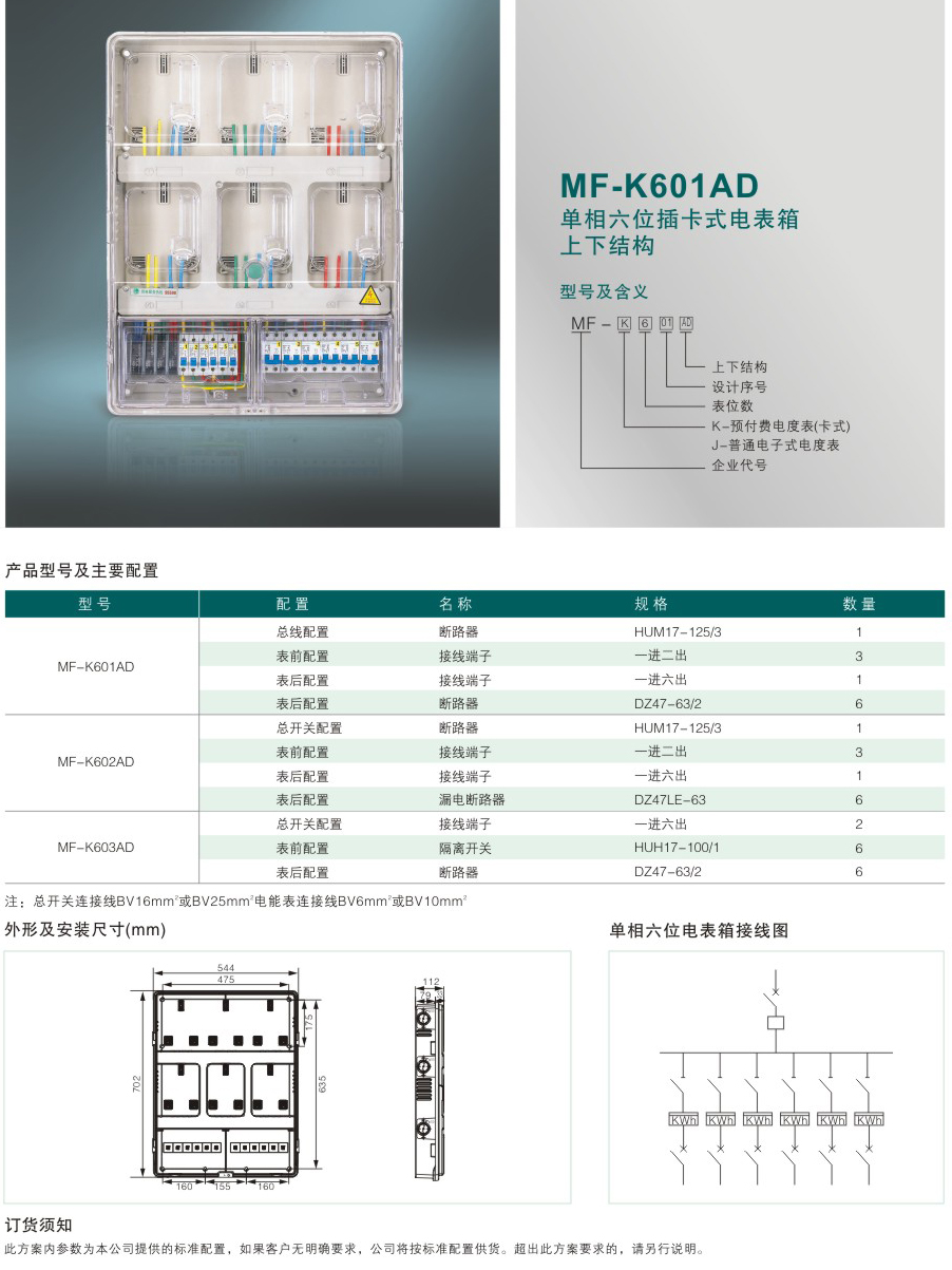 MF-K601AD 單相六位插卡式電表箱上下結構