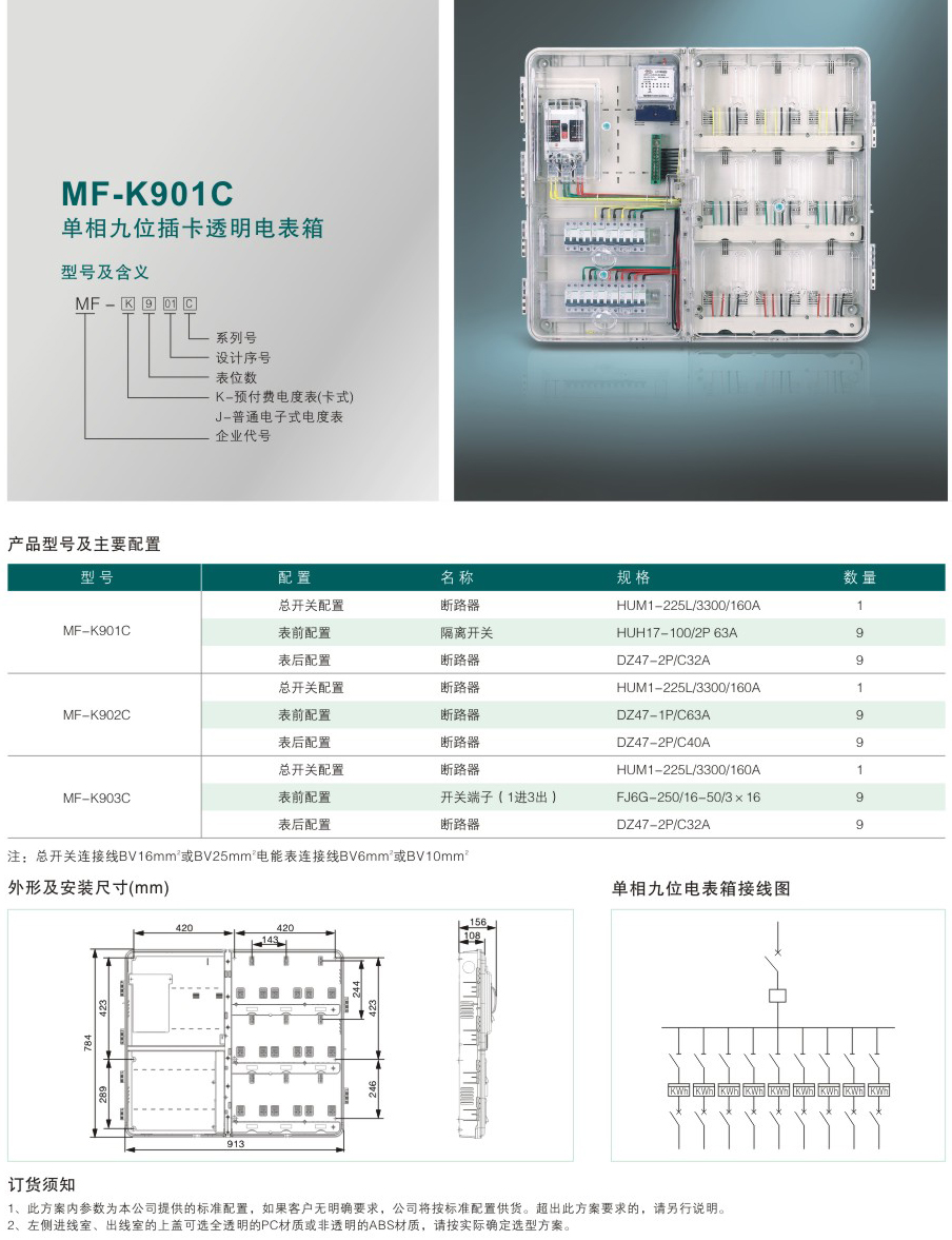 MF-K901C 單相九位插卡透明電表箱